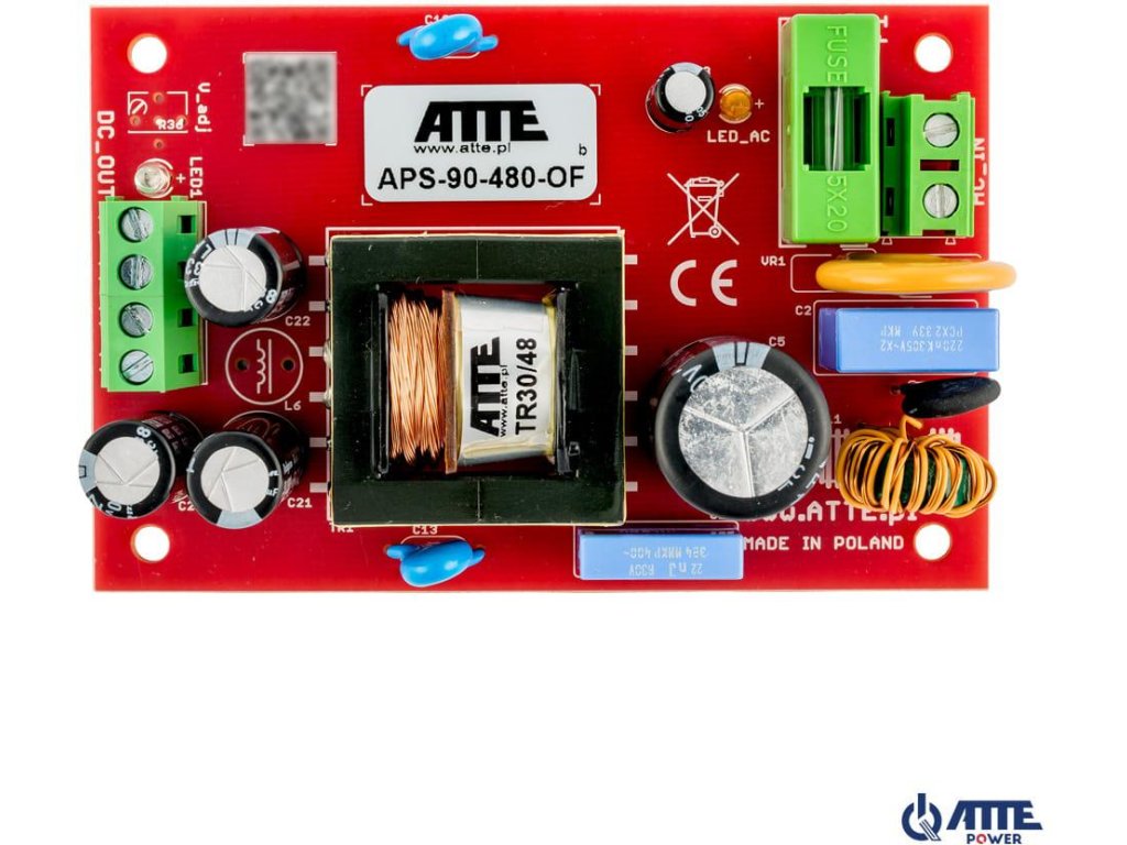 APS-90-480-OF je napájacia jednotka poskytujúca stabilné jednosmerné napätie pre náročné elektronické zariadenia, ako sú CCTV kamery, DVR atď. Vďaka integrácii prepäťovej a skratovej ochrany sa odporúča najmä na použitie v monitorovacích systémoch, ktoré vyžadujú vysokú spoľahlivosť napájania. Napájací systém je vysoko výkonný zosilňovací menič, ktorý zabezpečuje izoláciu medzi vedením 230 VAC a napájaným zariadením.