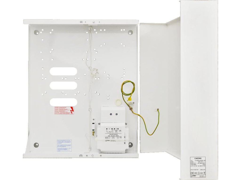 Skriňa 17/EIZ75/SATEL/G3 Použitie: SATEL Konštrukcia podľa EN50131, stupeň 3 Rozmery: Š=330 H=395 D=90 mm Transformátor: EIZ 75VA/20V, IP43Priestor pre batériu: 17Ah/12V Ochrana proti sabotáži: sabotáž - otvorenie a odpojenie oDodatočné parametre