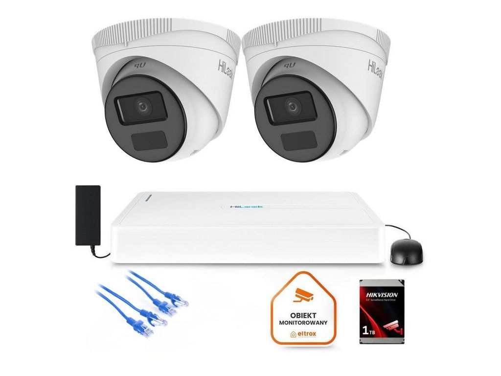 HiLook 2MP IP monitorovací set - 2x IPC-T221H-C kamera + NVR PoE + 1TB disk | IR 30m | Full HD