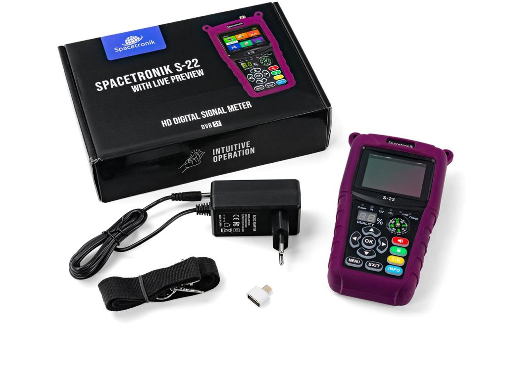 SAT Finder Spacetrnik S 22 syng meter má funkcie na indikáciu BER, PWR, SNR chyby. Zabudovaný spektrálny analyzátor. Merač podporuje všetky tradičné SAT LNB a konvertory UNICABLE I/II SCR/DCSS. Merač SAT má zabudovaný gyroskop na nastavenie uhla a kompasu.