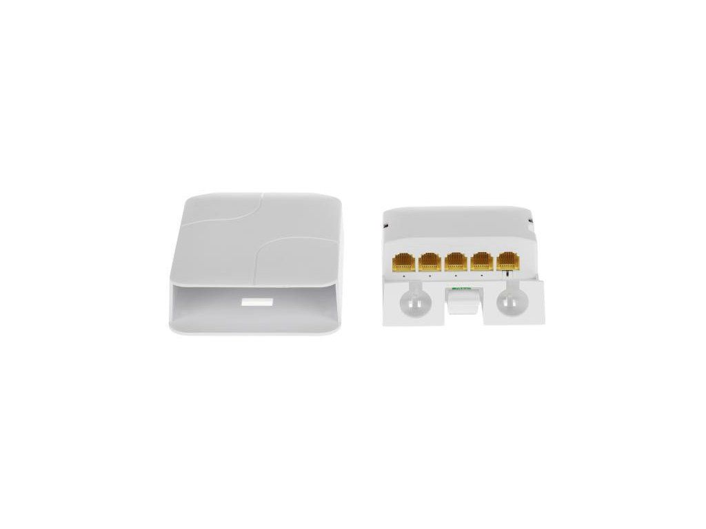 - 10 / 100 / 1000 Mbps: 4 porty RJ-45 + PoE OUT,