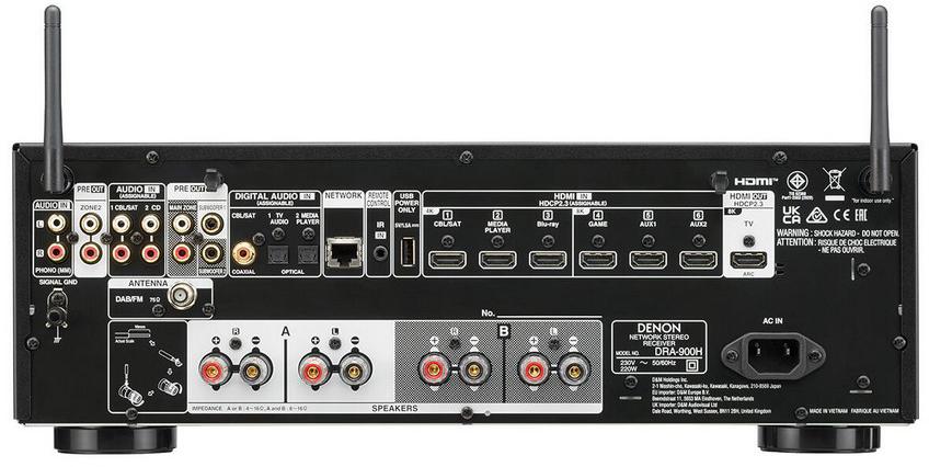 Vychutnajte si vysokokvalitné počúvanie a video s rozlíšením 8K HDMI z 2-kanálového sieťového stereo prijímača so zabudovaným bezdrôtovým streamovaním hudby HEOS® a tunerom DAB+.