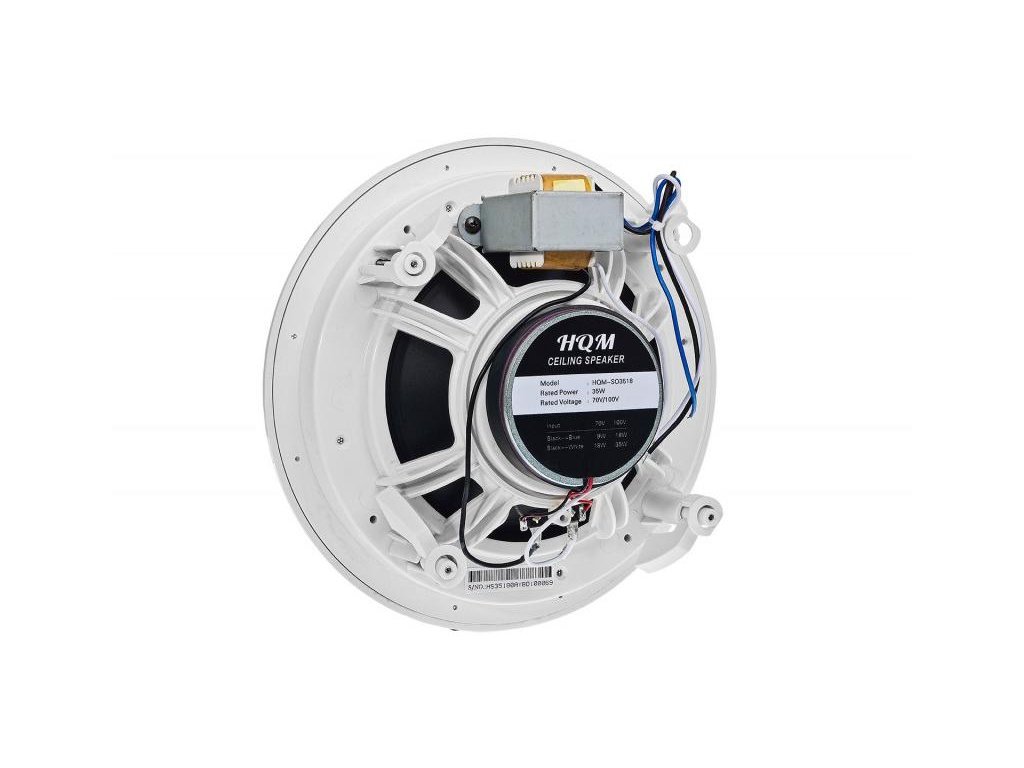 Stropný reproduktor HQM-SO3518 je špičkové zariadenie používané na pokročilé 100V systémy verejného rozhlasu v domácich a priemyselných priestoroch. Reproduktory so značkou High Quality Music sa vyznačujú neuveriteľnou kvalitou zvuku, robustnou konštrukciou a jednoduchou inštaláciou. Zariadenie HQM SO3518 je určený výlučne na inštaláciu v miestnostiach so zavesenými stropmi (napr. zo sadrokartónu).