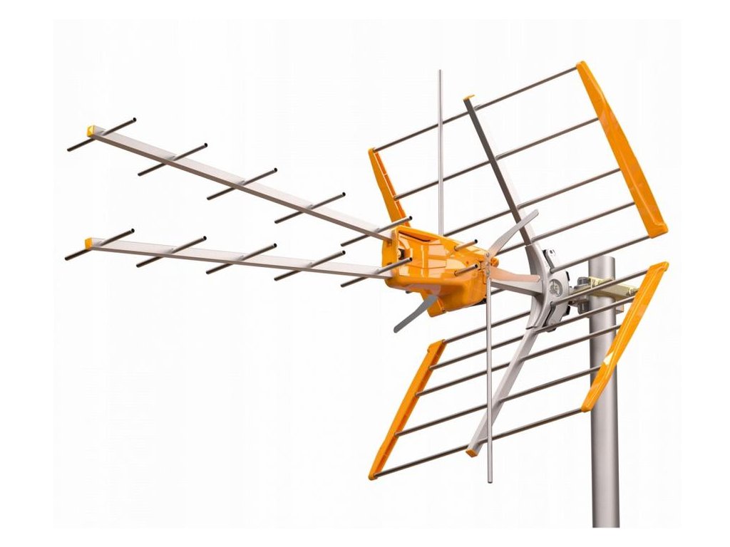 - Časť UHF je anténa typu "V" , pozostávajúci z dvoch vertikálne a fázovo uložených Yagiov, čo umožňuje veľmi dobrý zisk. Anténa obsahuje filter s útlmom v pásmach vyšších ako kanál 48, ktorý nemá vplyv na plochosť frekvenčnej charakteristiky priepustného pásma (kanály 21-48). Vďaka tomu je anténa vhodná pre digitálny rozdeľovač 2 (LTE700).