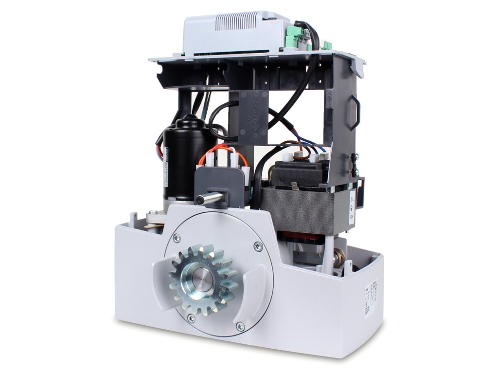 - Jeho výhodou je aj plynulá regulácia otáčok v koncových polohách a možnosť eliminovať vplyv náhleho zastavenia brány.