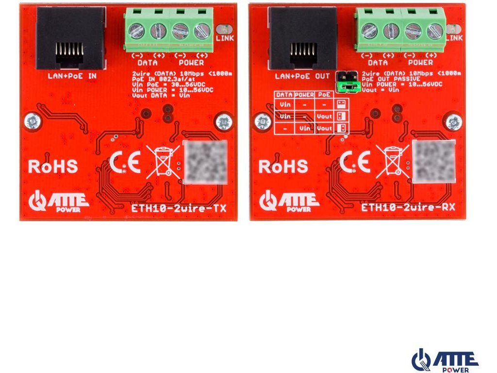 ETH10-2wire-SET je súbor aktívnych konvertorov na prenos dát a napájania siete Ethernet PoE zahŕňajúce 2 drôty napr. jeden krútený pár kábla UTP