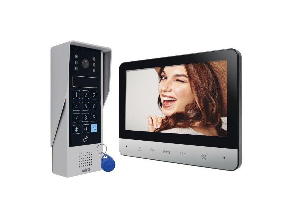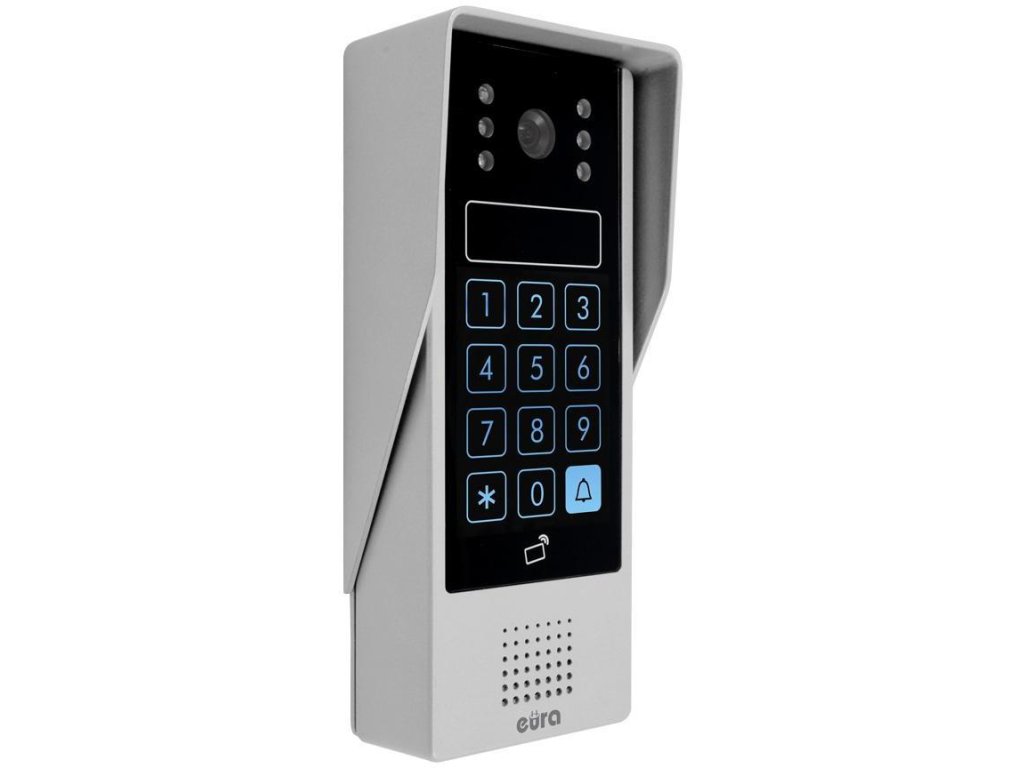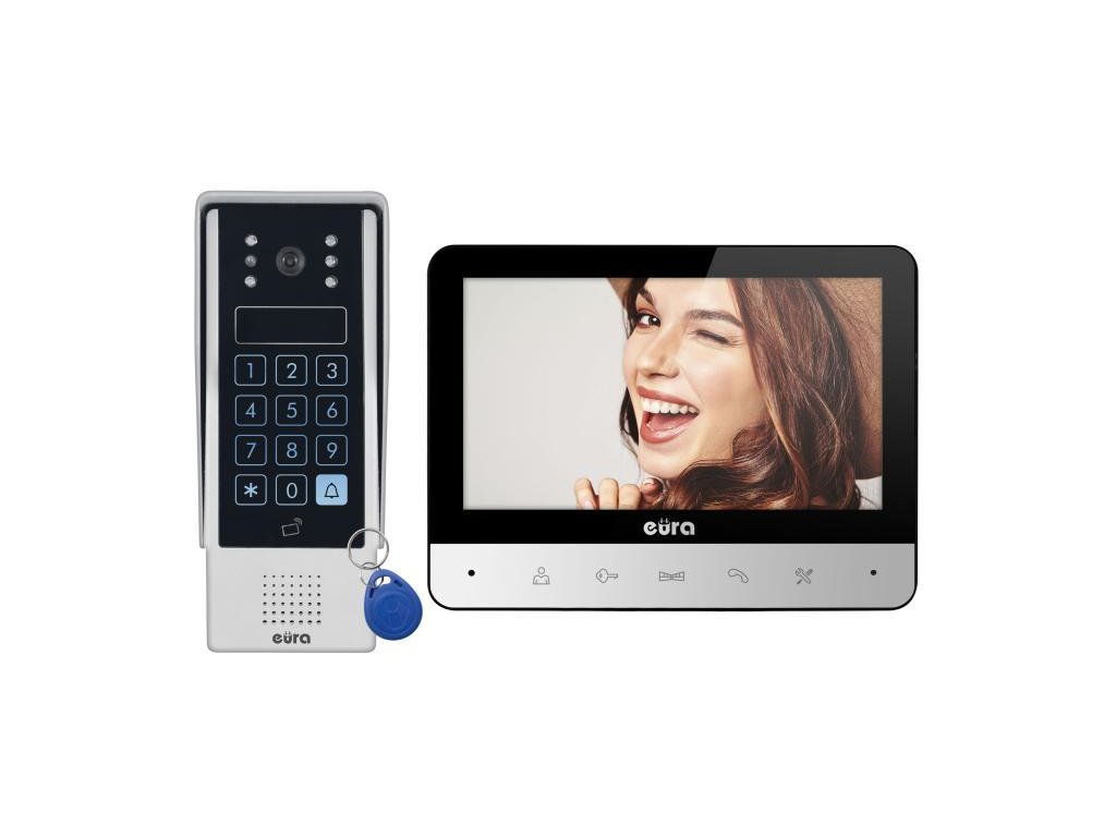 - Vstup do objektu je možný po zadaní správneho kódu na klávesnica s dotykovou obrazovkou alebo prostredníctvom bezkontaktná čítačka pre kľúčenky a karty . Vrátane - s video interkomom EURA VDP-77A3 - dostanete 7 týchto príveskov na kľúče!
