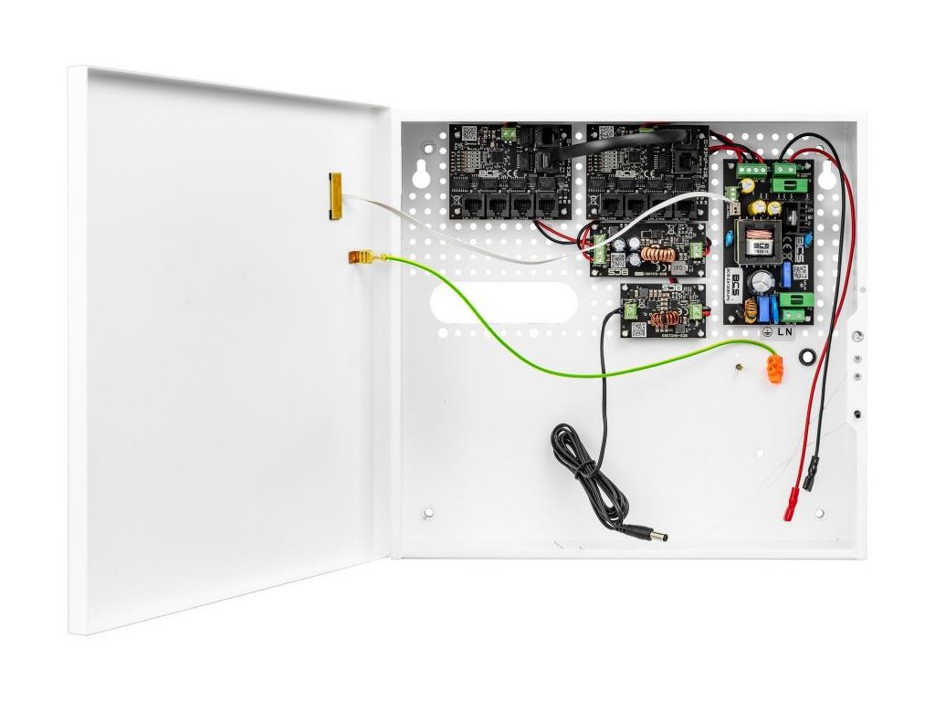 Súprava vyrovnávacieho napájania pre 9 prijímačov PoE vo vnútornom kryte.