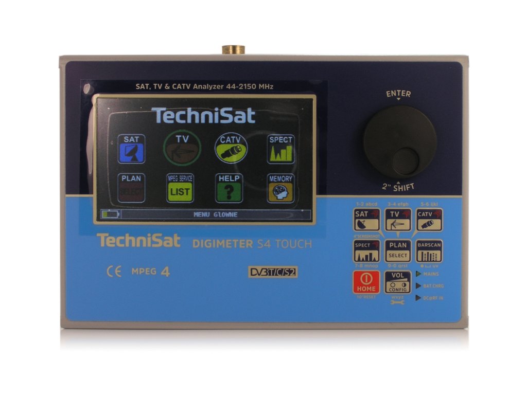 Profesionálny merač Technisat S4 Touch so 4,3" dotykovým LCD displejom, veľkými funkčnými tlačidlami a otočným gombíkom umožňuje presnú navigáciu v pokročilých funkciách zariadenia.