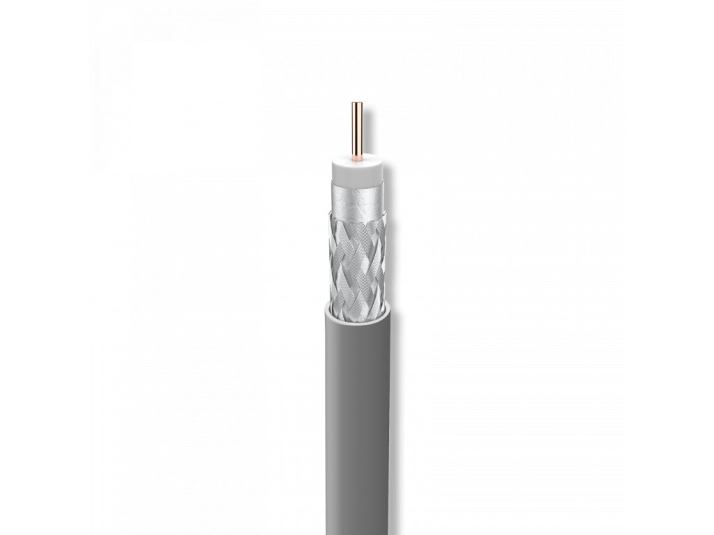 Koaxiálny kábel RG-6 s medeným vodičom a hliníkovým opletením (Cu/Al). Vynikajúce pokrytie opletenia (79 %). Kábel 19AtC , dvojité tienenie, vonkajší plášť: LSFH.