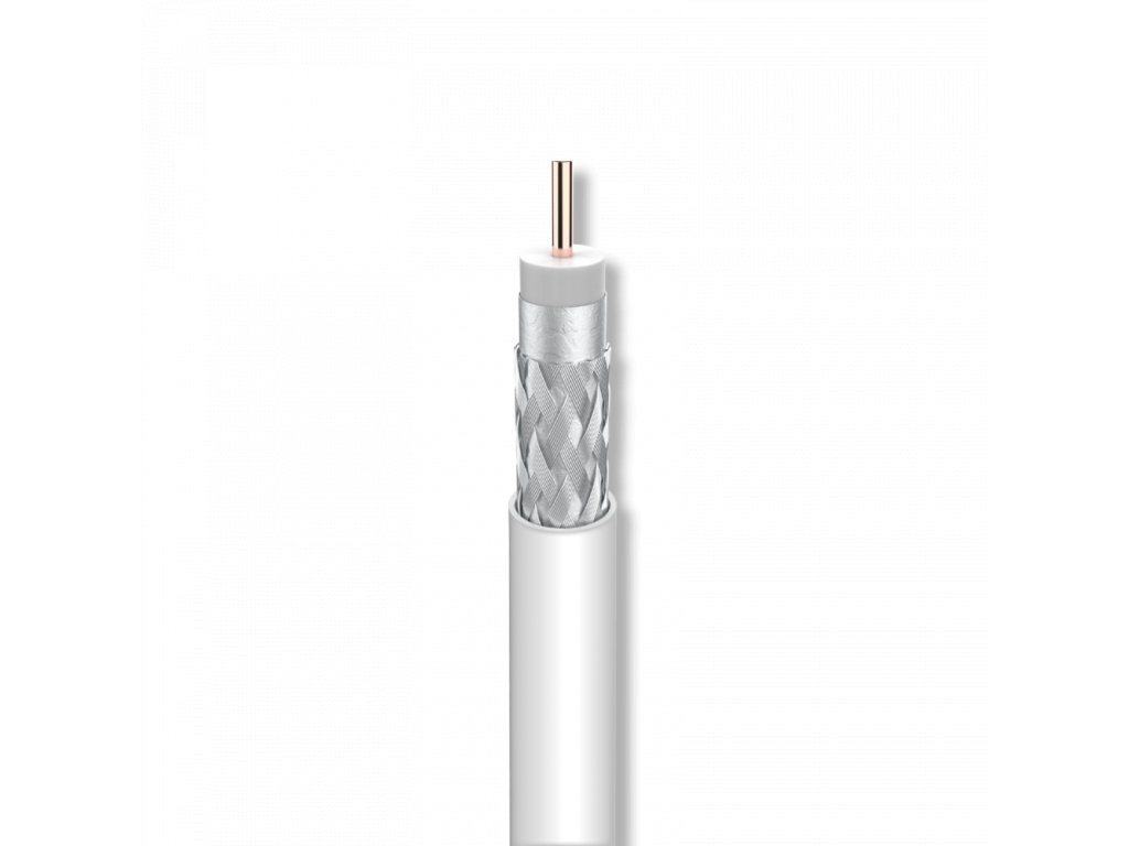 Koaxiálny kábel RG-6 s medeným vodičom a hliníkovým opletením (Cu/Al). Vynikajúce pokrytie opletu (77 %). Kábel 16VAtC , dvojité tienenie, vonkajší plášť: PVC.