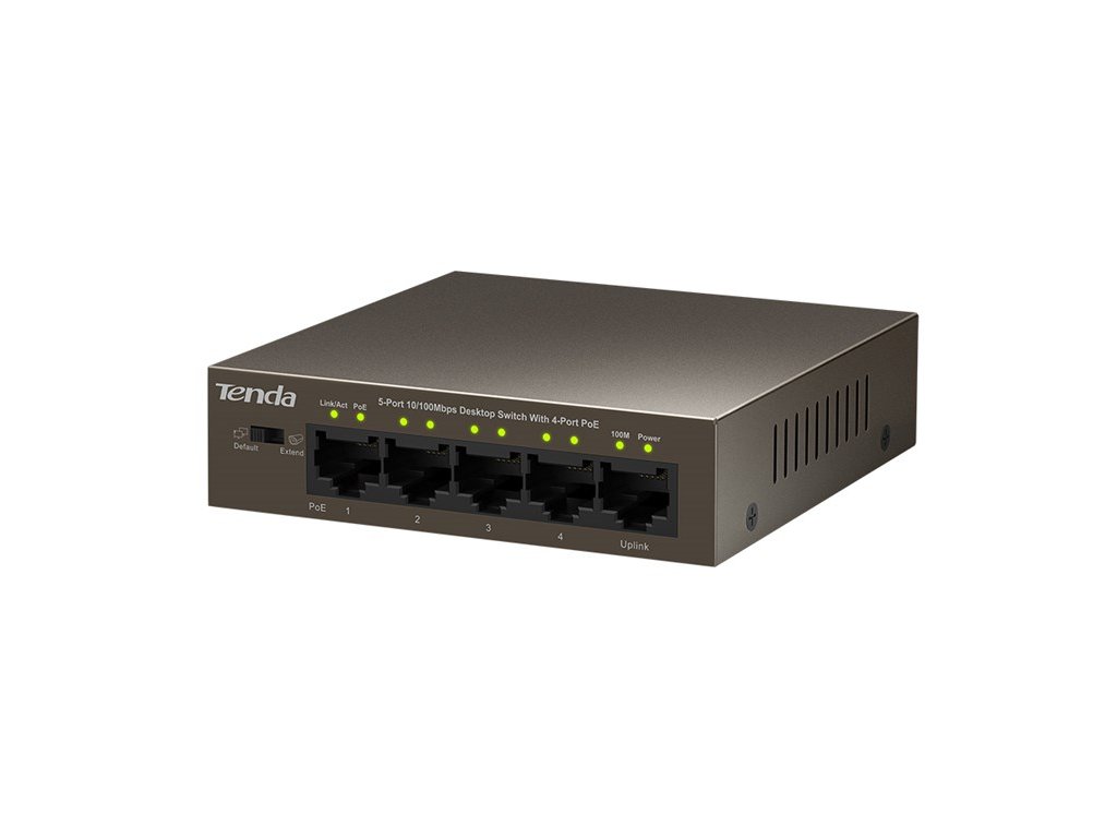 Výkonný 5-portový ethernetový switch Tenda TEF1105-4-63W je stolové zariadenie špeciálne navrhnuté pre malé a stredne veľké siete. Keďže ide o zariadenie typu plug-and-play, inštalácia prebehne v krátkom čase. Zariadenie prostredníctvom 4 portov PoE dokáže automaticky detekovať a napájať všetky zariadenia napájané podľa štandardu IEEE 802.3af / at-driven (PD). Ak povolíte režim "Ethernet Extension", porty 1 - 4 budú vyjednávať s plnou rýchlosťou čítania až 10M a budú navzájom izolované, ale všetky budú komunikovať s portom Uplink. V tomto režime môže byť prenosová vzdialenosť až 250 m. Zariadenie vďaka funkcii PoE umožňuje rozšíriť dosah siete na miestach, kde nie je prístup k zásuvkám alebo elektrickému vedeniu a kde je potrebné umiestniť prístupové body, IP kamery, IP telefóny atď.