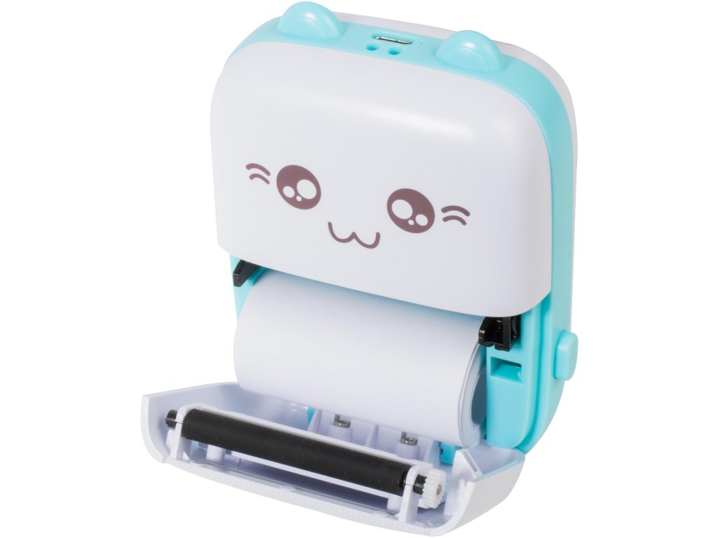 Prenosná očarujúca beztlačidlová tlačiareň so zásobou 16 kotúčov termálneho papiera (jedna rolka je súčasťou zariadenia), určené pre deti a dospelých (ako kancelárske príslušenstvo).
