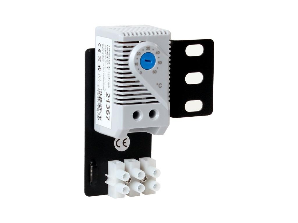 Termostat sa používa na ovládanie ventilátora v stojane. Umožňuje nastaviť konkrétnu teplotu vo vnútri stojana a sám riadi zapínanie a vypínanie ventilátora. Umožňuje optimalizovať prevádzkovú teplotu zariadenia a spotrebu energie, a tým šetriť náklady.