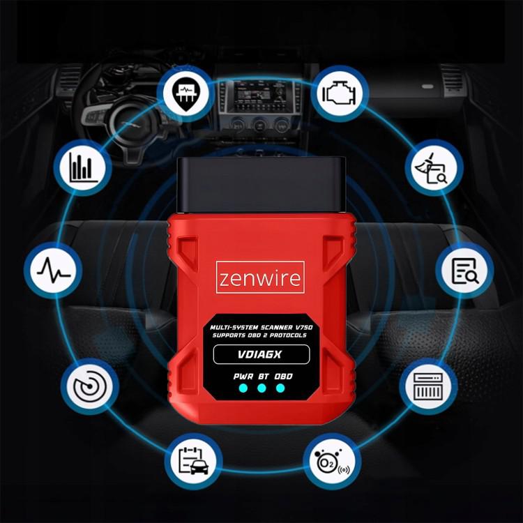 Zenwire VDiagX V016 je najmodernejšie diagnostické rozhranie OBD2 s pripojením Bluetooth, ktoré vám umožní rýchlo skontrolovať stav vášho vozidla pomocou smartfónu, tabletu alebo počítača. Po pripojení do zásuvky OBD2 umožňuje čítať a odstraňovať chyby motora (Check Engine), ako aj monitorovať prevádzku vozidla v reálnom čase.