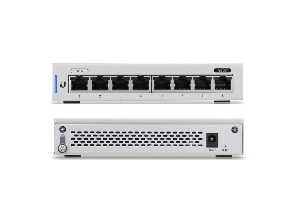 UBNT-US-8 je spravovaný gigabitový prepínač od spoločnosti Ubiquiti. Zariadenie je vybavené 8 portami s rýchlosťou 1 Gb/s.