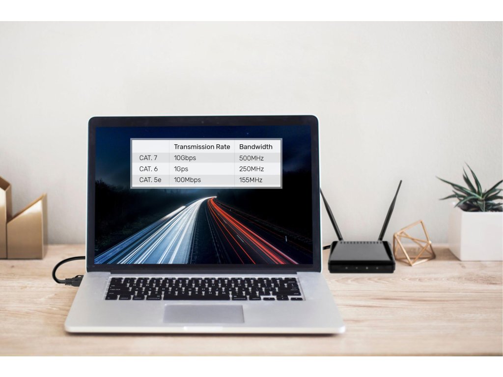 - Štandard káblaKat. 7 umožňuje odosielať10 gigabitov dát za sekundu v pásme 500 MHz