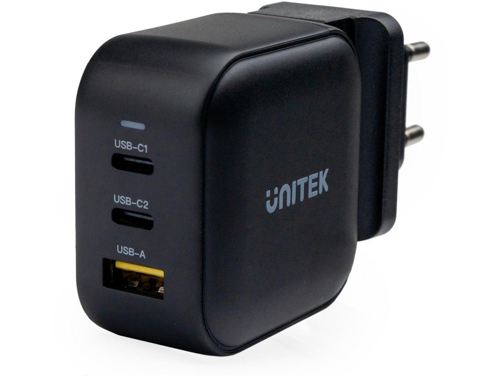 Unitek GaN 3-portová, PD 66W QC 3.0 sieťová nabíjačka čierna