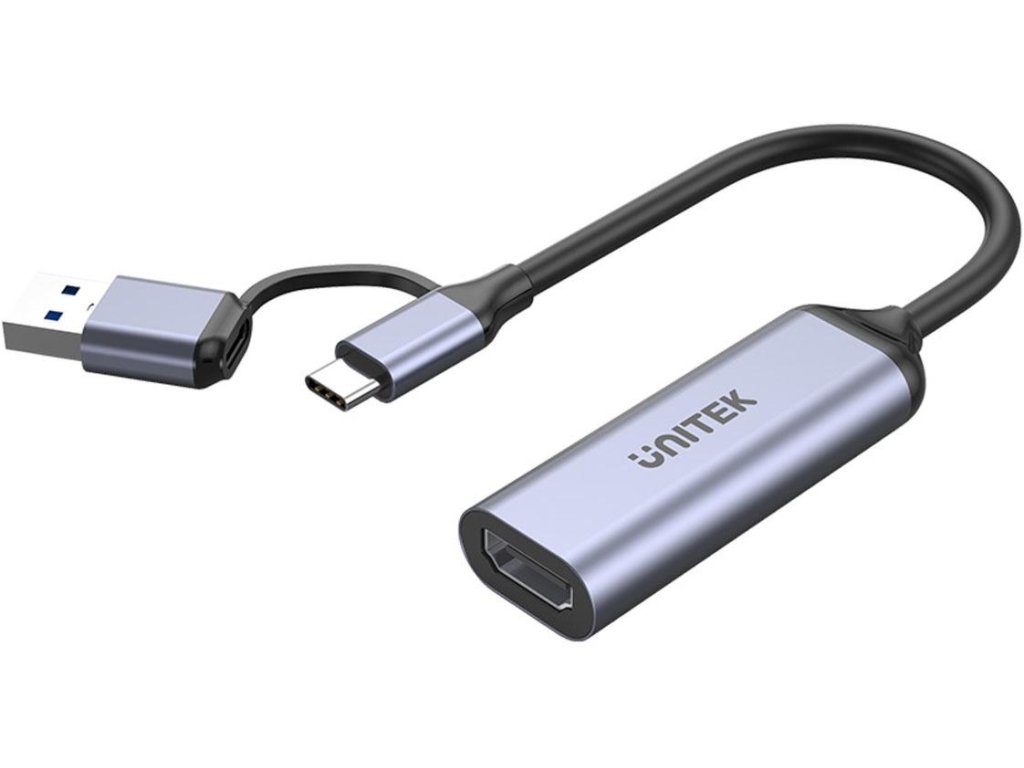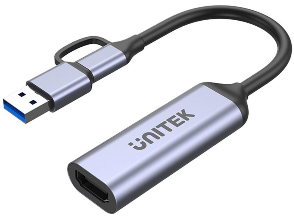 Unitek HDMI video grabber je vybavený adaptérom USB-A. To znamená, že príslušenstvo môžete pripojiť k počítaču, aj keď nemá konektor USB-C. Je to hračka - stačí zapojiť adaptér do zásuvky USB-A v počítači a kábel USB-C priamo do adaptéra!