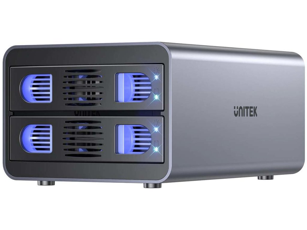 - Podporuje 2,5" aj 3,5" disky: Vďaka univerzálnym šachtám môže jednotka pojať menšie 2,5" aj väčšie 3,5" disky, čo zvyšuje jej flexibilitu a umožňuje používať rôzne médiá.