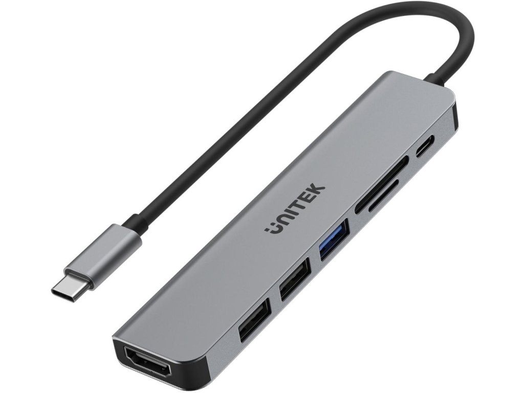 Unitek uHUB S7+ je rozbočovač USB s adaptérom na pamäťové karty a konektorom HDMI