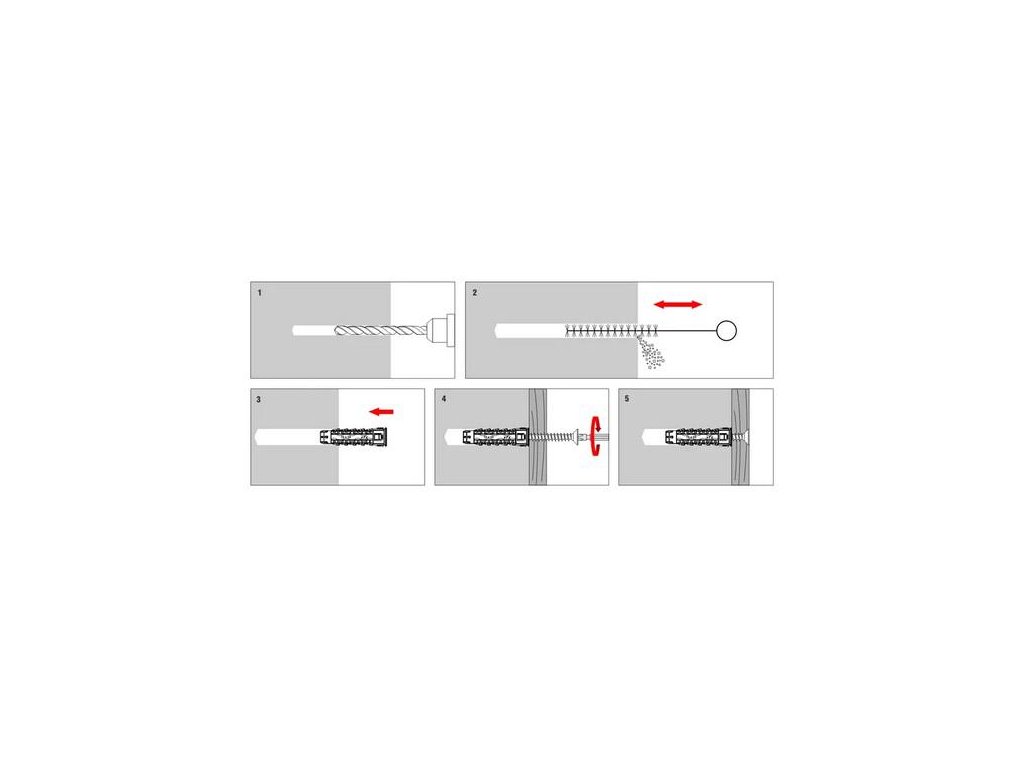 Upevňovanie bytových armatúr, upevňovanie káblových kanálov a elektrických inštalácií, upevňovanie svietidiel v podkladoch, ako sú betón, pórobetón, plná keramická tehla, dierovaná tehla, plná silikátová tehla, cementová doska, sadrokartón.
