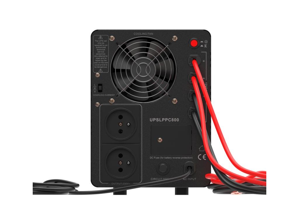 - Zariadenieumožňuje pripojenie externej batérieaby ste si mohli vybrať kapacitu podľa svojich potrieb a zabezpečiť dostatočný čas zálohovania. Celá jednotka je uzavretá v robustnom kovovom kryte.