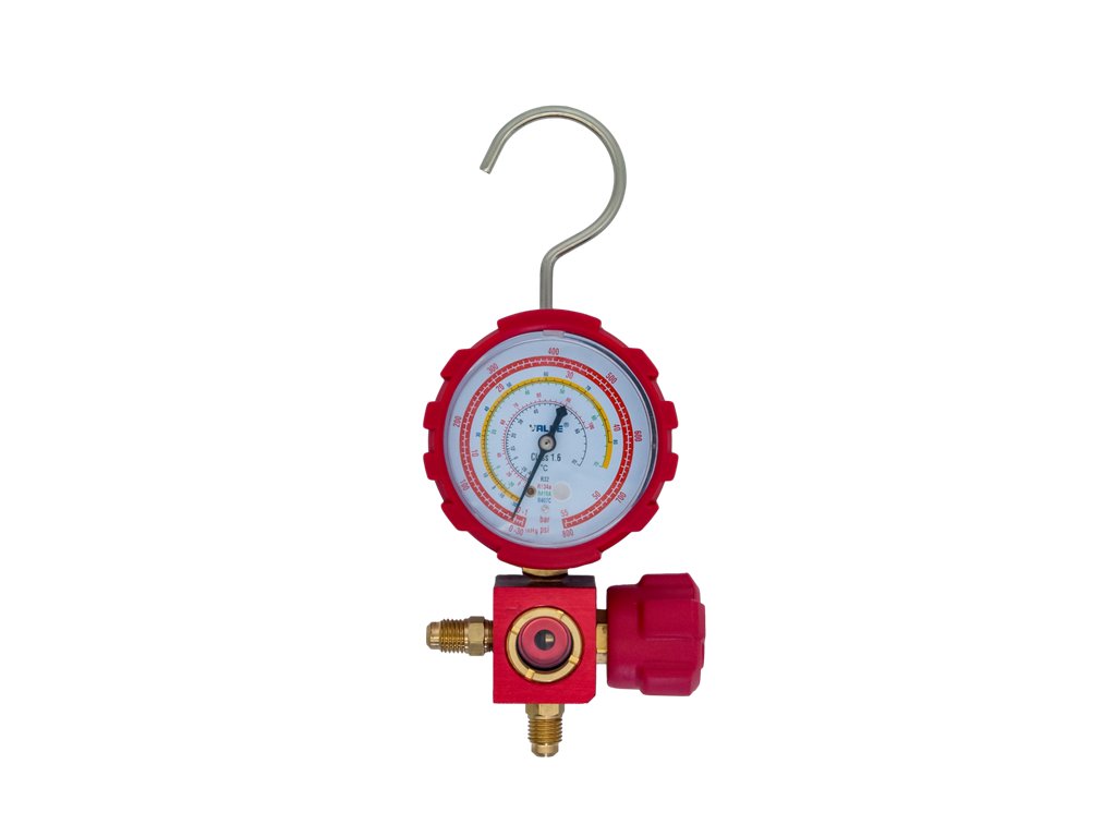 Jednoduchý vysokotlakový manometer pre chladiace a klimatizačné systémy.