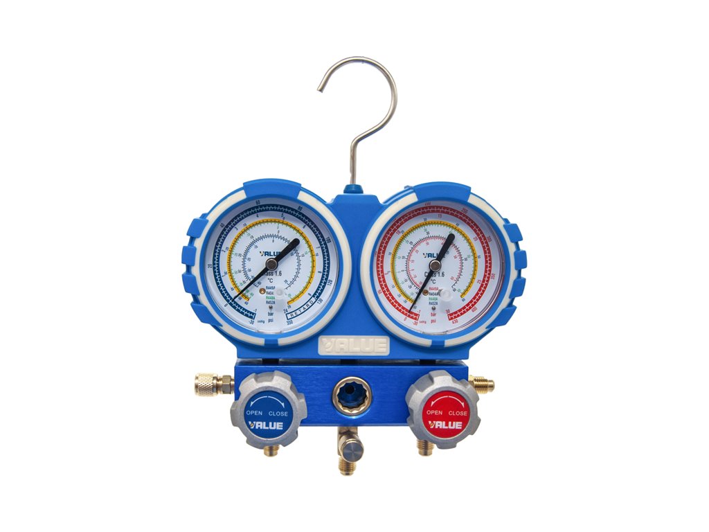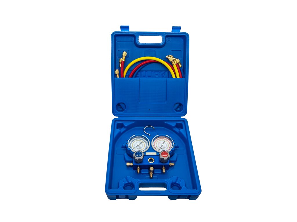 Súprava manometrov pre chladiace a klimatizačné systémy.
