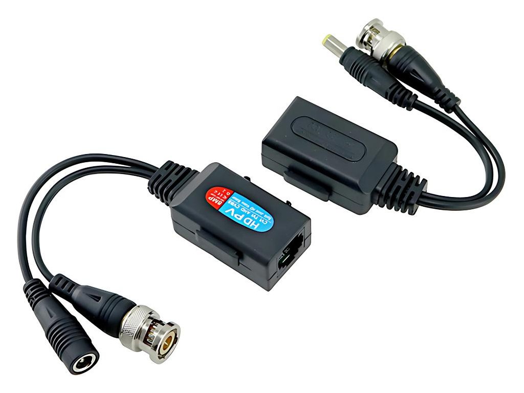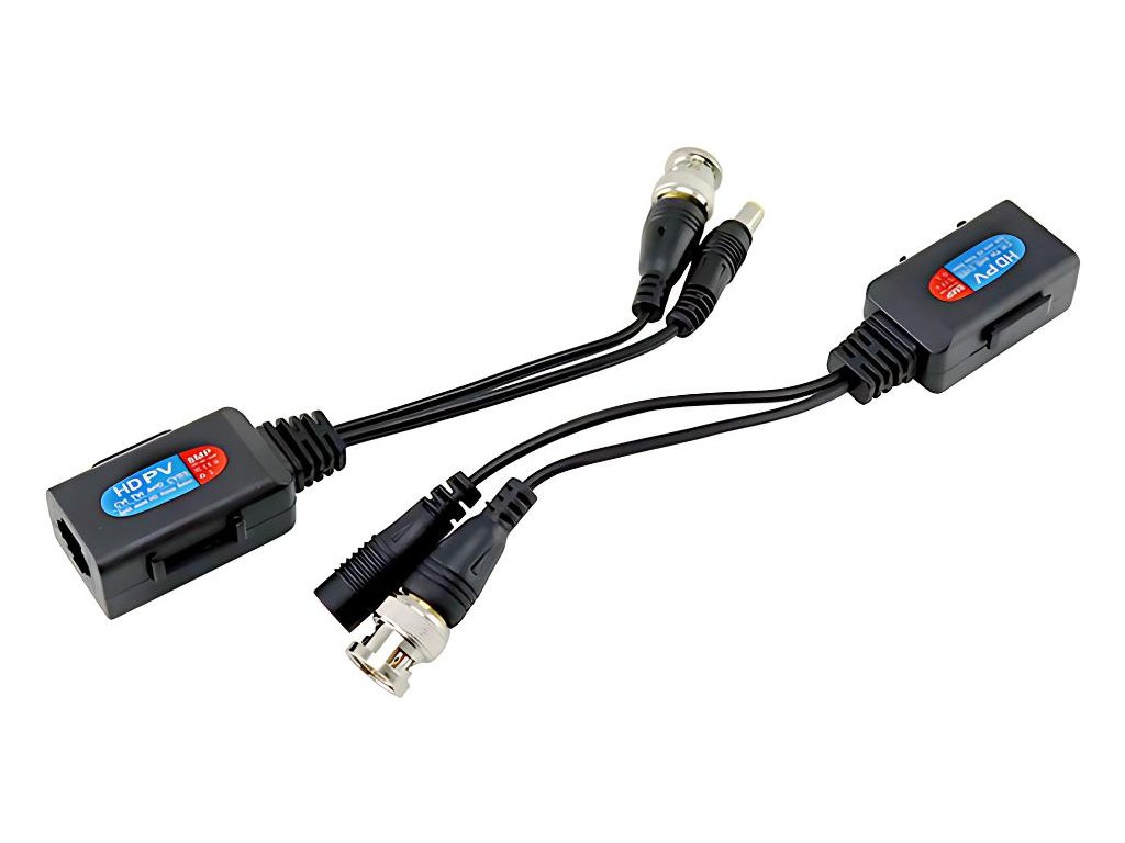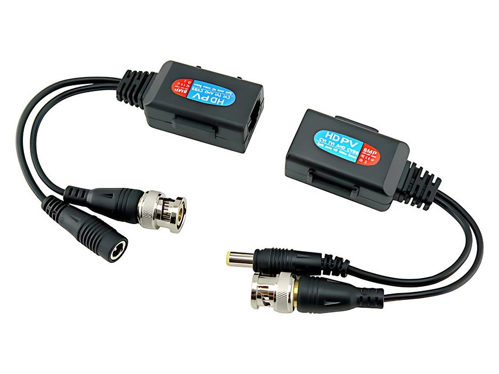 HD video transformátor 2v1 (video + napájanie) je pasívne zariadenie na súčasný prenos videa CCTV s vysokým rozlíšením a napájania prostredníctvom úsporného káblaUTP (krútená dvojlinka) kategóriaCAT5e/6. Toto riešenie výrazne zjednodušuje inštaláciu monitorovacích systémov a eliminuje potrebu viesť samostatné káble.