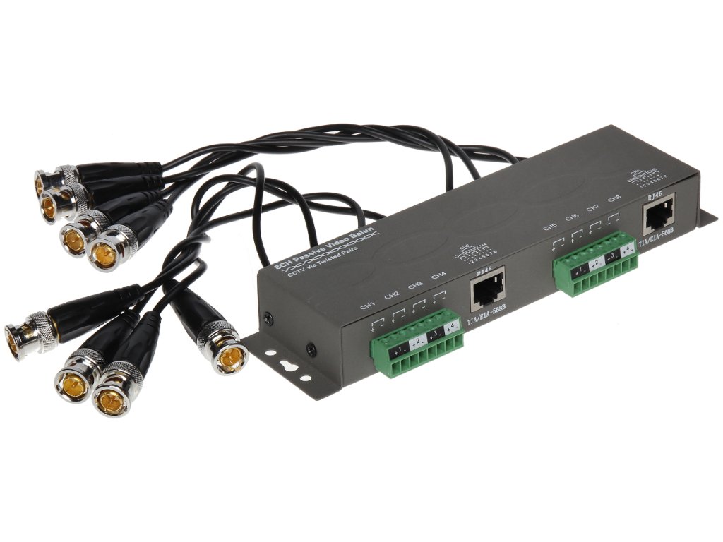 TR-8M je určený na prenos videosignálu prostredníctvom krútenej dvojlinky. Zariadenie prispôsobuje impedanciu koaxiálneho kábla 75Ω impedancii symetrického kábla, čím zabezpečuje prenos videosignálu až na vzdialenosť 400 m (krútená dvojlinka CAT5) a eliminuje asymetrické rušenie.