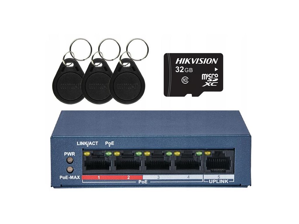 Súčasťou balenia sú všetky komponenty potrebné na inštaláciu vrátaneprepínač PoE, bezkontaktné ovládače a pamäťová karta microSDčo umožňuje uviesť systém do prevádzky ihneď po inštalácii.