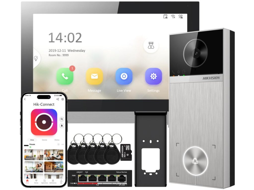 Video interkomHikvision DS-KIS613-S je moderný systém kontroly prístupu, ktorý umožňuje pohodlnú správu vstupu do budovy a audio-video komunikáciu s osobami pri bráne alebo vstupnej bráne. Súprava je vybavená7-palcový dotykový monitorktorý poskytuje pohodlnú obsluhu a intuitívne ovládanie všetkých funkcií zariadenia.