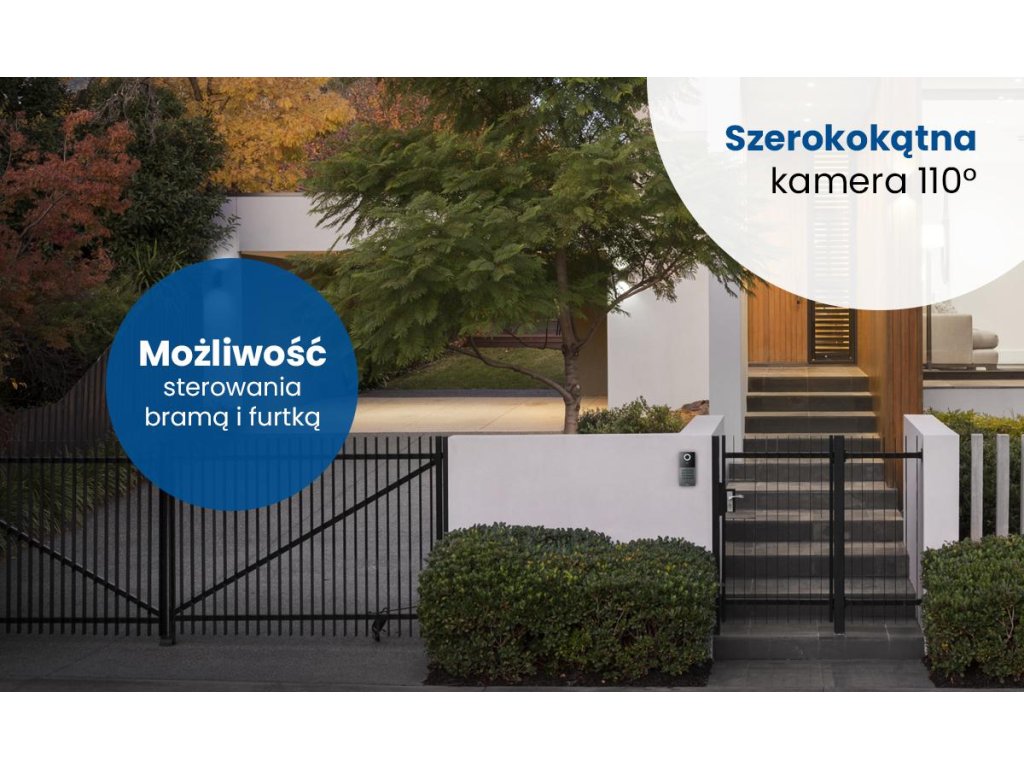 - Robustná konštrukcia panelu (z hliníka a vysokokvalitného plastu)zaručuje trvanlivosť a spoľahlivosť. Fotoaparát s rozlíšením2MPx a široký pozorovací uhol110° umožňuje jasný výhľad na okolie aj pri slabom osvetlení vďaka funkcia nočného svetla LED.