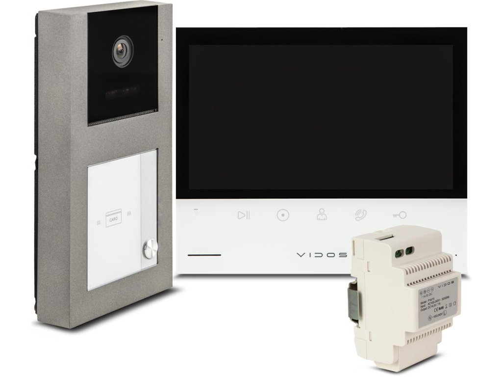 - Pre súpravu videointerkomu VIDOS M11W-X a stanica brány S11-1 súčasťou balenia je napájací zdroj na DIN lištu - 14,5 V DC/1A! Nebojte sa, že váš systém kontroly prístupu bude ovplyvnený nedostatkom energie!