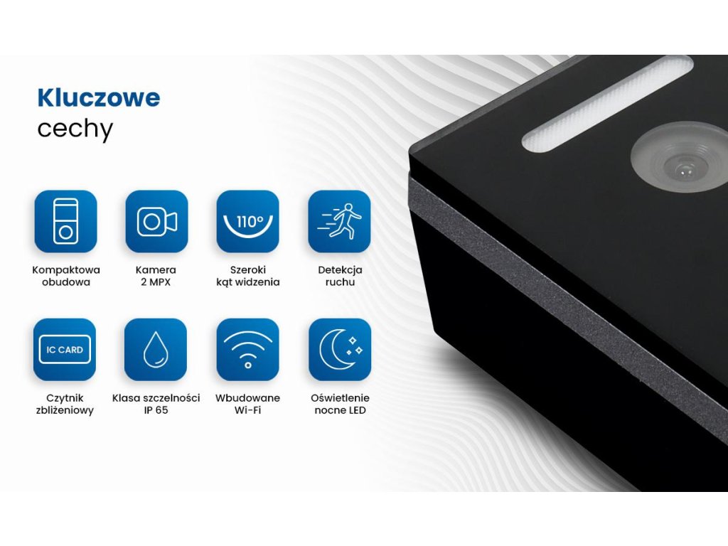 - Voliteľné pripojenie Wi-Fi a Bluetooth umožňuje jednoduché pripojenie panela k iným zariadeniam a vzdialenú správu dverovej stanice pomocou smartfónu alebo iných mobilných zariadení s nainštalovanou aplikáciouKenik Mobile.