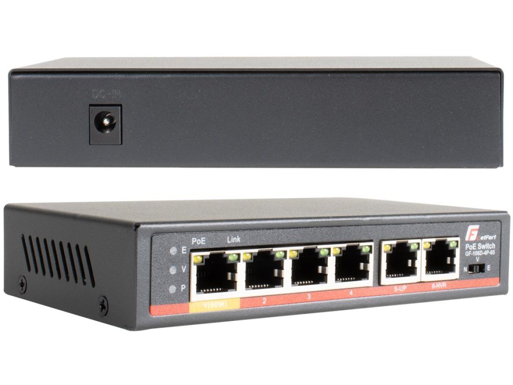 - Prepínač Getfort GF-106D-4P-65 je ideálnym riešením na nasadenie IP kamier na veľkej ploche.