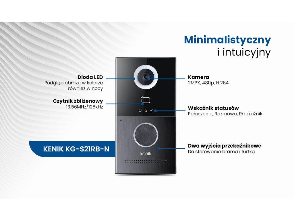 KENIK KG-S21RBfunkciavideo interkom jeden predplatiteľ ariadenie prístupu k sieti. Kontrola prístupu je založená na čítačke kariet pracujúcej na frekvenciáchMifare (13,56 MHz)a RFID UNIQUE (125 kHz).