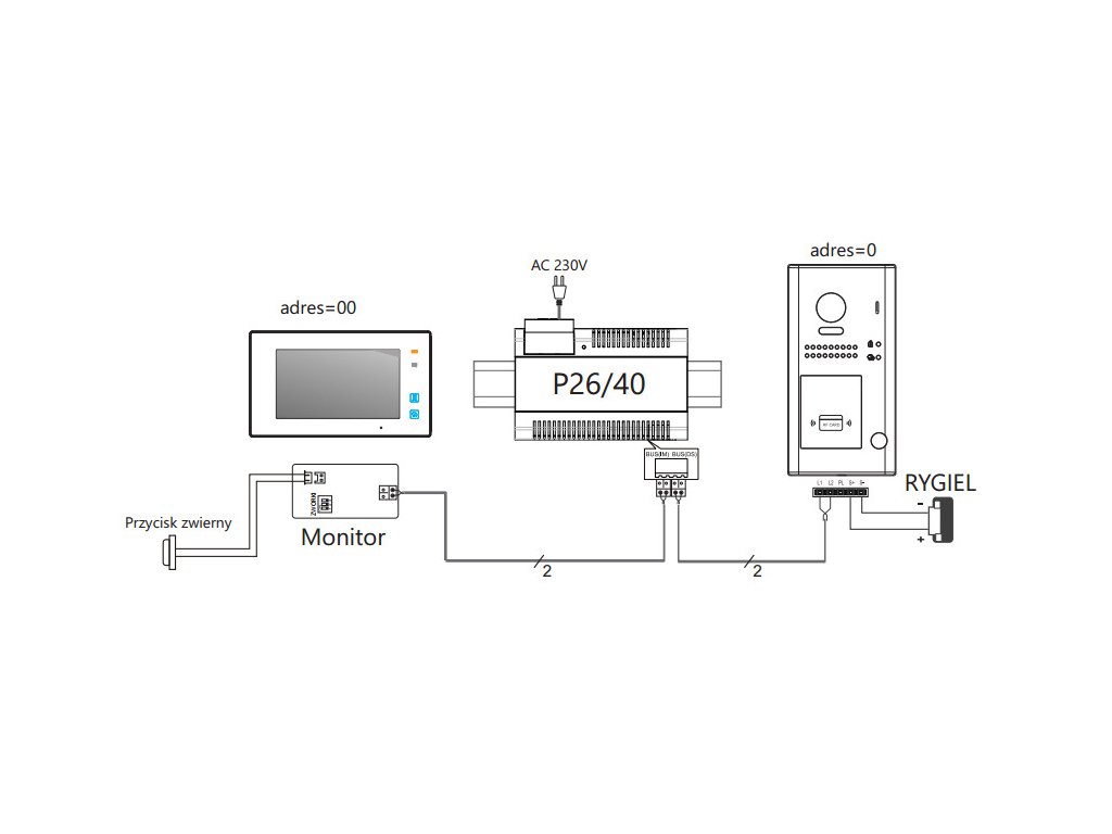 Panel má možnosť ovládať dve relé (druhé relé s modulom B5). Maximálny počet podporovaných vnútorných zariadení (monitory/jednotlivé telefóny - 13 pre každé tlačidlo volania)
