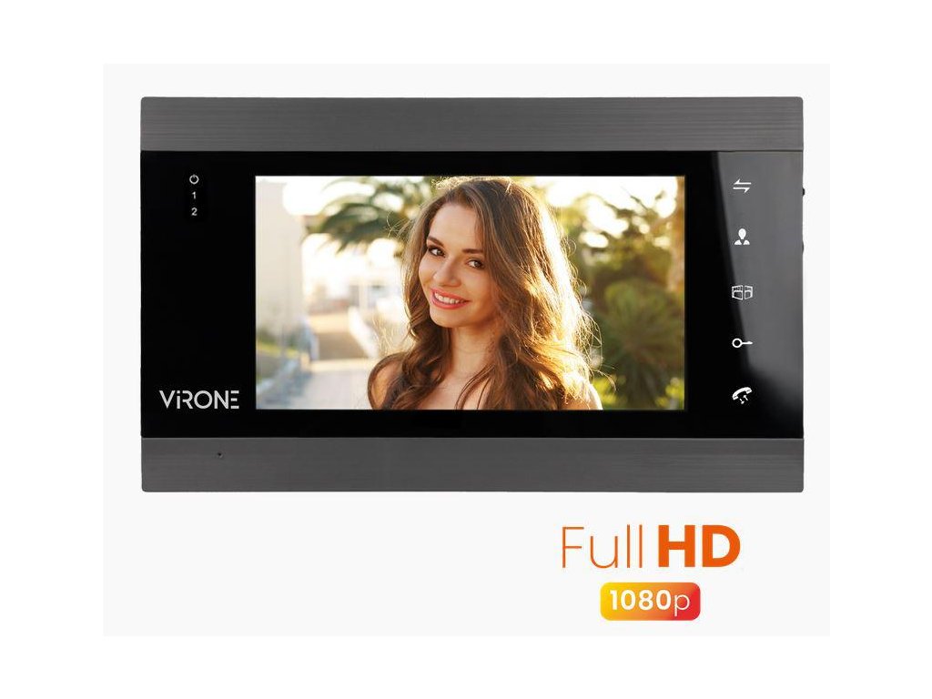 - 7" farebný video monitor s bezplatnou aplikáciou pre váš telefón na riadenie vnútornej a vonkajšej komunikácie, funkciu nahrávania videa a obrazu a ovládanie brány, kompatibilné s vonkajším panelom Full HD VDP-61FHDKV.