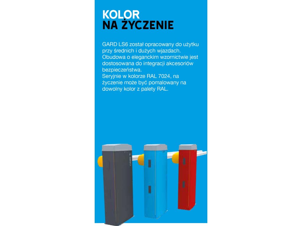 Fotobunky a ovládacie príslušenstvo možno namontovať priamo na konštrukciu závory. Okrem toho môže pokročilá elektronická doska GARD LS6 obsluhovať aj bezpečnostné systémy CAT.2.