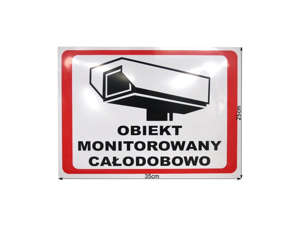 Profesionálna tabuľa "24 hodín monitorované zariadenie" pre vonkajšiu inštaláciu. Robustná a odolná tlač na vysokokvalitný PVC podklad. Odolné voči UV žiareniu! Tabuľu možno pripevniť napríklad na plot alebo stenu. Nespornou výhodou dosky je absencia predvŕtaných otvorov. Nebudú prekážať, ak sa rozhodnete prilepiť ju na nejaký povrch, a v prípade potreby ich možno bez problémov vyvŕtať na ľubovoľnom mieste, čím sa prispôsobia miestu montáže, a nie (ako v prípade plakiet s vyvŕtanými otvormi) prispôsobovať miesto montáže plakete.