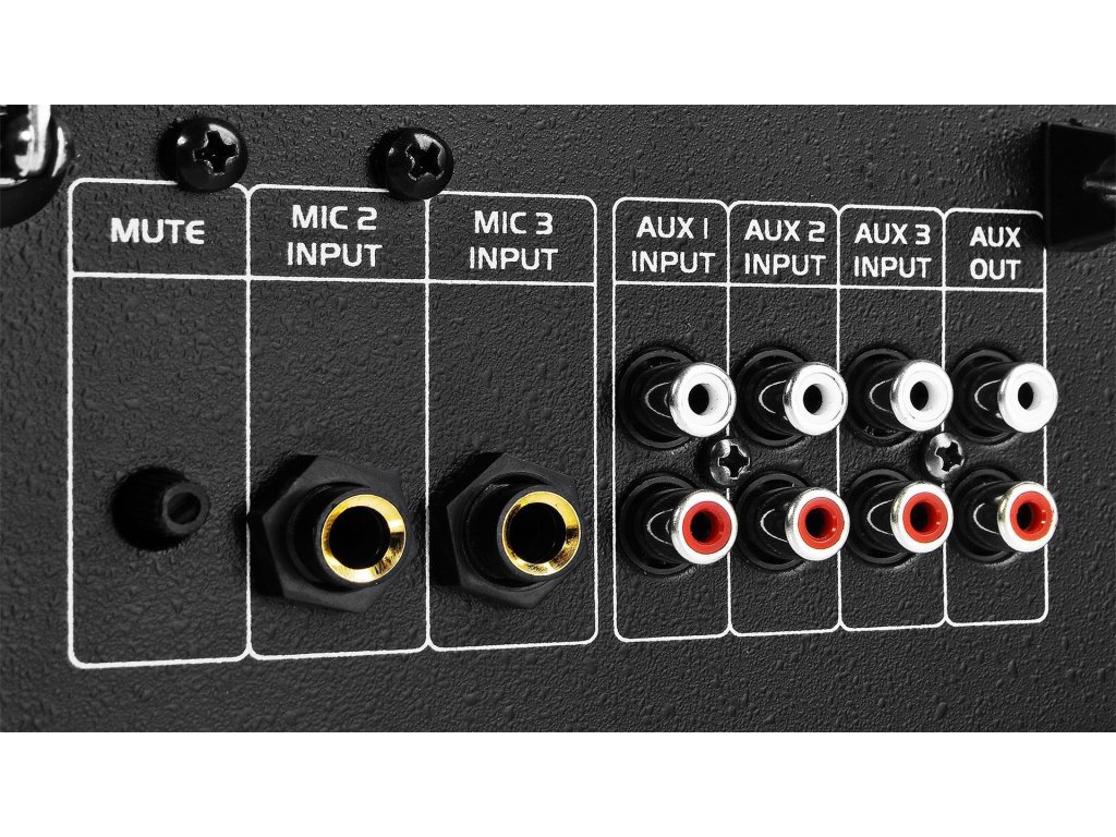 - Veľký počet dostupných mikrofónových a linkových vstupov zabezpečí plynulú distribúciu rečových signálov a hudby na pozadí zo všetkých používaných zariadení.