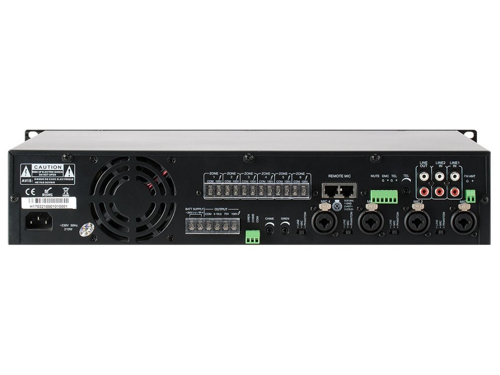 Zosilňovač je určený pre systémy verejného rozhlasu, kde je potrebné 6 zón so stredným výkonom.