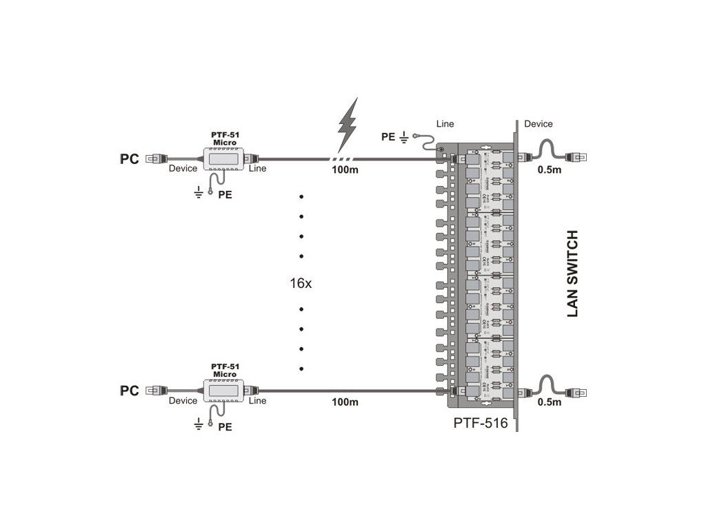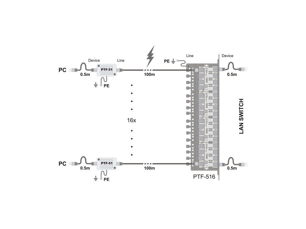1-kanálový zvodič prepätia LAN určený na zabezpečenie prepäťovej ochrany pre 100Mbitové zariadenia LAN, ako sú IP-CCTV kamery, internet vecí, prepínače LAN, priemyselné regulátory a regulátory automatizácie budov. Je kompatibilný s 10Base-T a 100Base-T ethernetovými sieťami využívajúcimi akýkoľvek typ kabeláže. V porovnaní s predchádzajúcou sériou sa dbalo na zabezpečenie prepäťovej ochrany pre obvody PoE akéhokoľvek typu spolu s odvedením náboja do zeme. Vysokokvalitné tlačené obvody spolu s vyladenými diferenciálnymi pármi zabezpečujú veľmi dobrý prenosový výkon a prispievajú k eliminácii presluchov, ktoré sú príčinou nestabilnej prevádzky LAN.