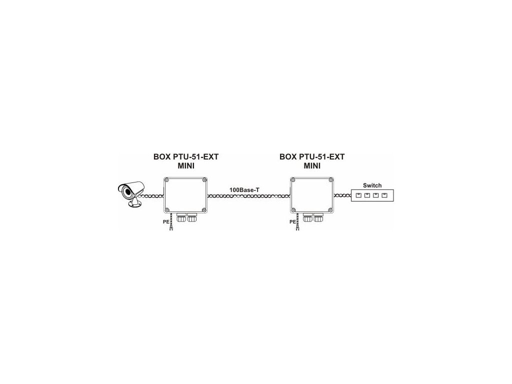 BOX-PTU-51-EXT/PoE/MINI je určený na ochranu smerovačov, prepínačov LAN, IP kamier, prístupových bodov WiFi a ďalších zariadení pracujúcich v 100Mbitových sieťach. Má účinnosť ochrany 4 - 5 kA @ 8/20 μs jednotlivo pre každý vodič kábla (v závislosti od ich hrúbky). Chráni koncové zariadenia LAN inštalované na stĺpoch alebo kovových konštrukciách, pred účinkami bleskov, prepätí, sabotážnych akcií a rozdielov potenciálov. Účinne eliminuje indukované prepätia počas výbojov v rámci prenosových párov a medzi výkonovými pármi PoE. Uzemňovací vodič odvádza napätie a prepäťové prúdy z preskokov iskier do zeme. Zabudovaná poistka MOSFET zvyšuje ochrannú účinnosť a znižuje ekvipotenciálne prúdy medzi uzemňovacími bodmi inštalácie CCTV.
